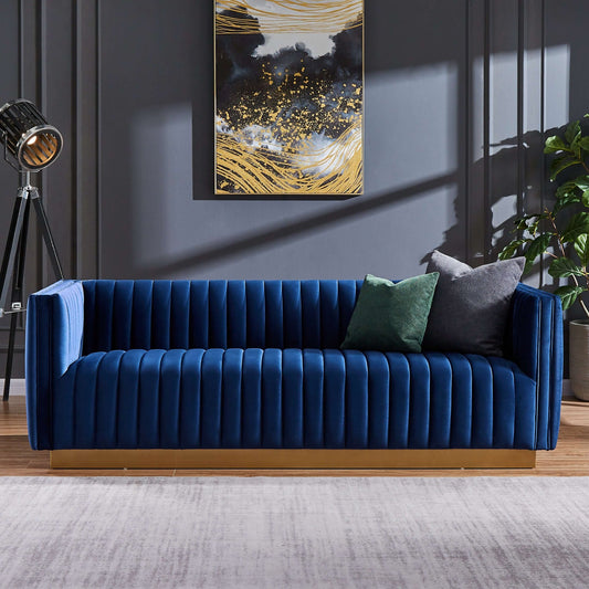 Marcus Mid-Century Modern Luxury Tight Back Blue Velvet Couch
