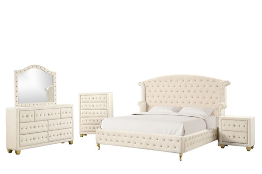 Olivia Beige Velvet Platform Bedroom Set B2029