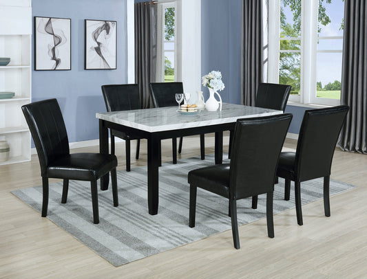 Ferrara White/Black Faux Marble Rectangular Dining Set 2221