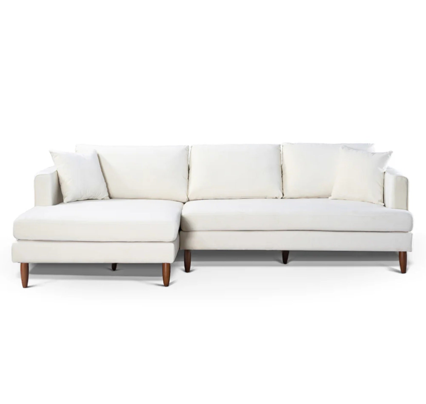 Blake 107" Cream Velvet L-Shaped Sectional Sofa Left Facing