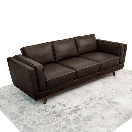 Colton Tan Mid-Century Modern Genuine Leather Sofa