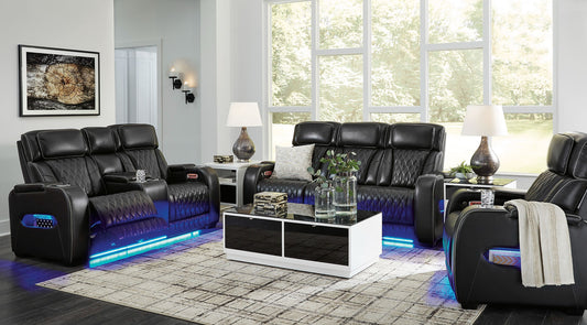 Boyington Black POWER/LED/GENUINE LEATHER Reclining Sofa and Loveseat U27106U1