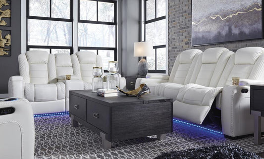 Party Time White LED/POWER Reclining Sofa and Loveseat 37004