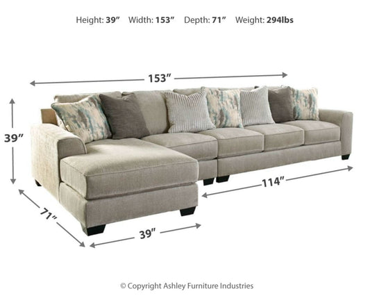 Ardsley Pewter 4pc 6-Seater LAF Chaise Sectional 39504