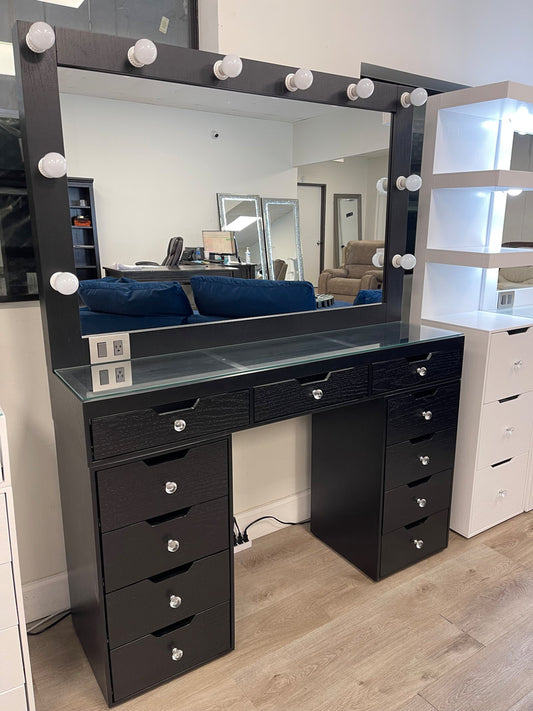 Avery Black Makeup Vanity Set with Lighted Mirror
