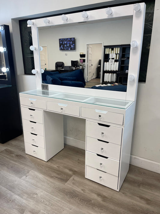Avery White Makeup Vanity Set with Lighted Mirror B4850