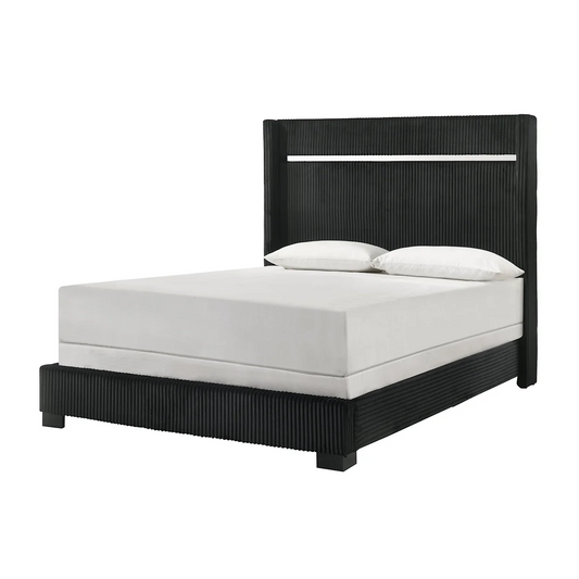 Gennro Black Corduroy Upholstered Panel Bedroom Set B9295