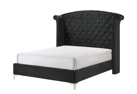 Lucinda Black Velvet Upholstered Panel Bedroom Set B9265