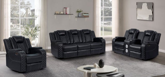 Dubai Black POWER/LED/BLUETOOTH SPEAKERS 3pc Reclining Set
