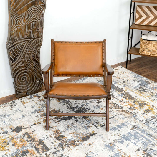 Connor Tan Solid Wood Genuine Leather Lounge Chair