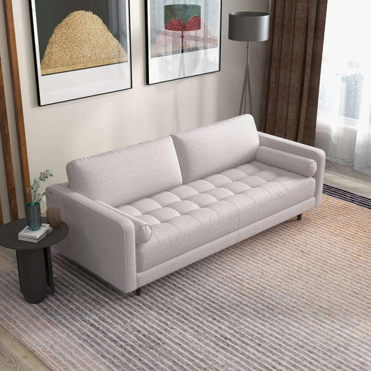 Anthony 88" Mid-Century Modern Cream Velvet Sofa