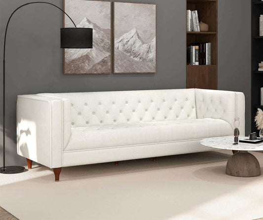 Evelyn 88" Beige Boucle Luxury Chesterfield Sofa