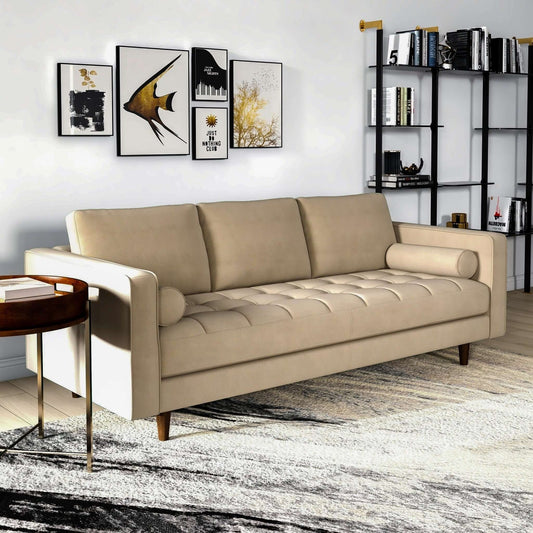 April 86" Mocha Velvet Mid Century Modern Sofa