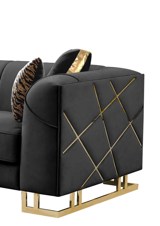 Designer Black Velvet Sofa and Loveseat S902