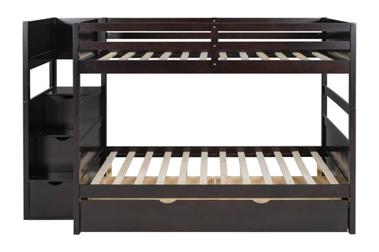 BB50 FULL/FULL Espresso Bunk Bed w/Twin Trundle + Staircase Storage