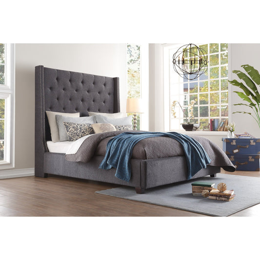 Fairborn Gray Tufted Queen Platform Bed with Storage Footboard | 5877