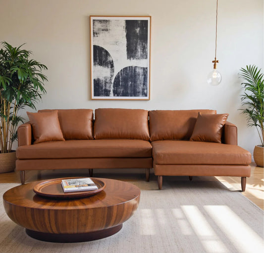 Blake L-Shaped Cognac Vegan Leather Sectional Sofa Right Facing
