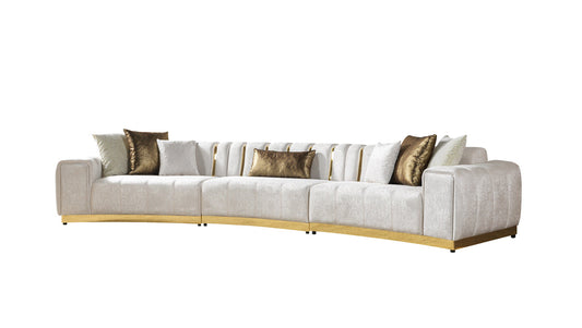 Michelle Ivory Velvet 3pc Curved 165" Sectional