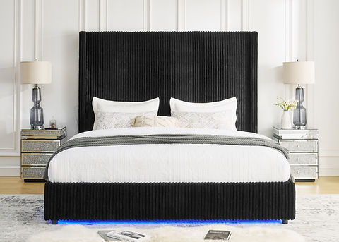 Florence Black Boucle LED/BLUETOOTH SPEAKERS King Platform Bed