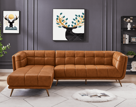 Addison 103" Tan Genuine Leather L Shape Tufted Sectional
