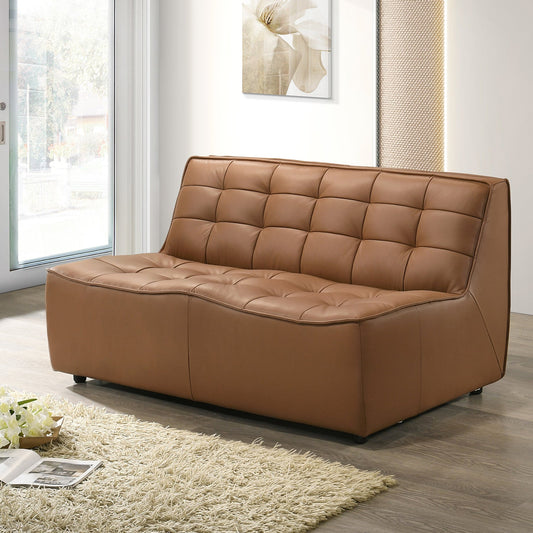 Lucco Cognac Modern L-Shaped Genuine Leather LAF Sectional