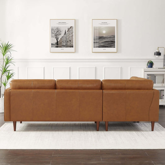 Lucco Cognac Modern L-Shaped Genuine Leather RAF Sectional