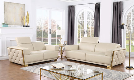 Hexor Beige Italian Leather Sofa and Loveseat MI-1245