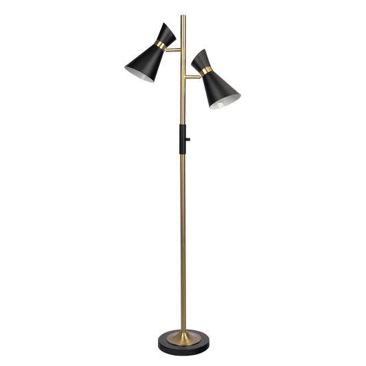 Axis Brassed Gold Floor Lamp with 4-Way Switch Double Spots with Metal Base