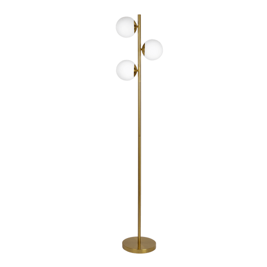 Brilliance Modern Gold Brush Floor Lamp, Opal Glass Shades and Round Metal Base