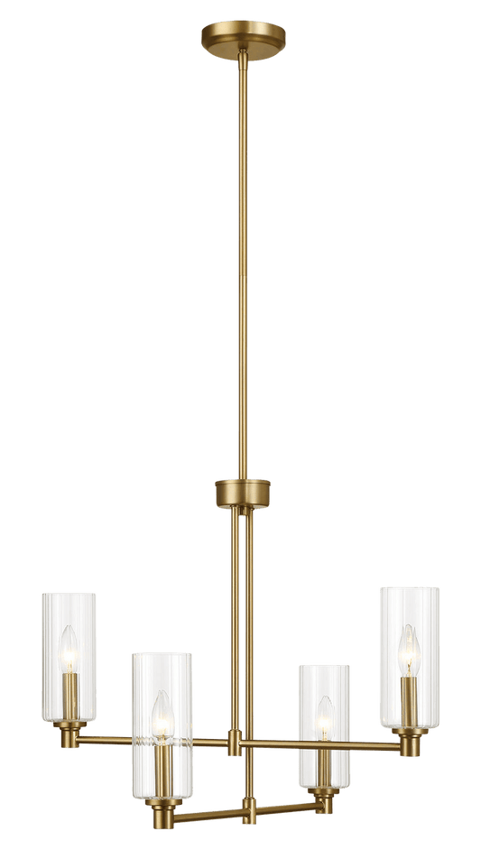 Enigma Four Lights Chandelier With Clear Ribbed Glass -Satin Brass