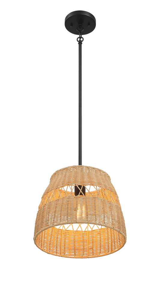 Essence Single Lights Pendant With Rattan Shade Black Metal Finish for Farmhouse Style
