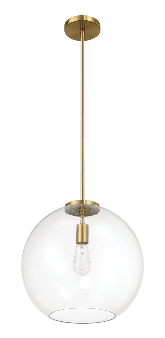 Gleam Single Light Pendant Lamp With Clear Globe Glass - Satin Brass