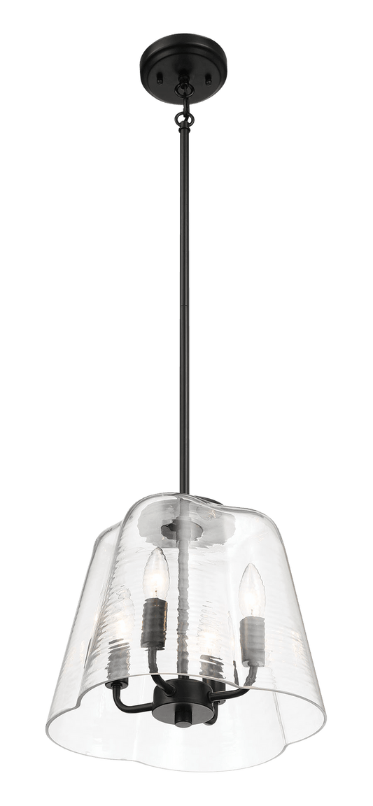Soiree Four Candle Lights Pendant With Clear Glass - Black Finish