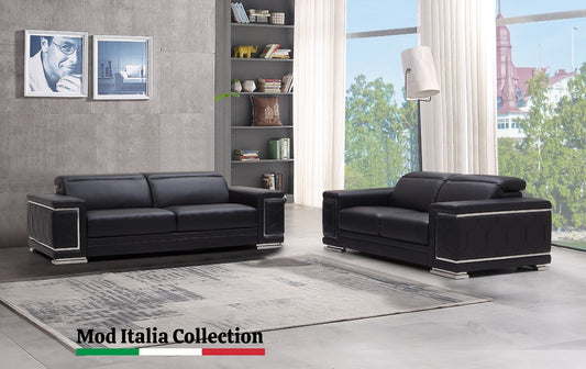 Domo Black ITALIAN LEATHER Living Room Set MI-8010