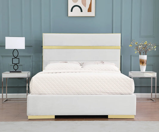 Token White Velvet King Platform Bed B840