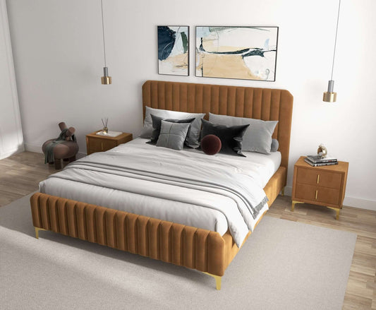 Bethany Cognac Velvet Upholstered King Platform Bed