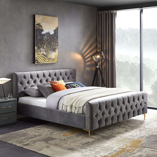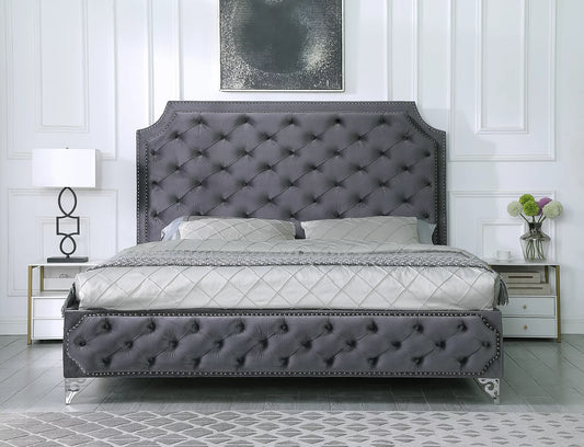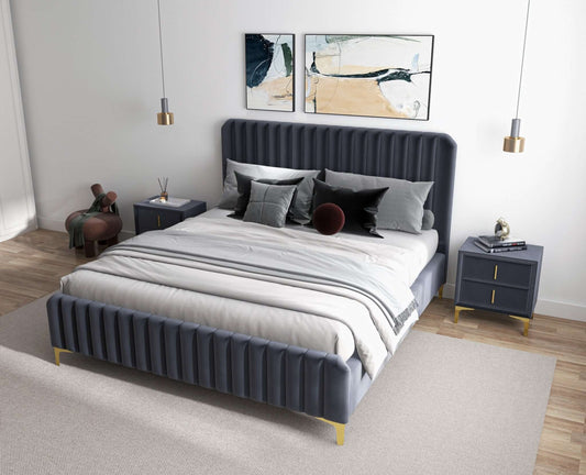 Bailey Grey Velvet Upholstered Queen Platform Bed