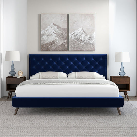 Bethany Sea Blue Velvet Upholstered Queen Platform Bed