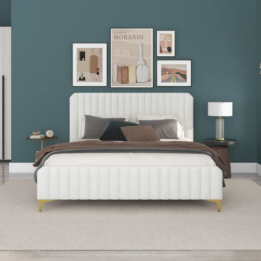 Hilar Mid-Century Modern White Boucle Queen Platform Bed