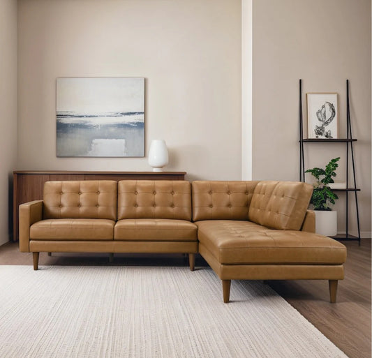 Lucco Cognac Modern L-Shaped Genuine Leather RAF Sectional