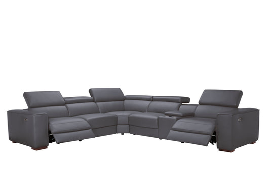 Picasso II Dark Grey 2-POWER Italian Leather Match 6pc Sectional MI631
