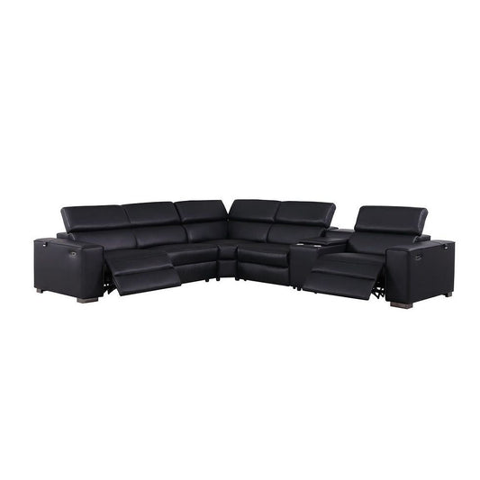 Picasso Black 2-POWER Leather Match 6pc Sectional MI631