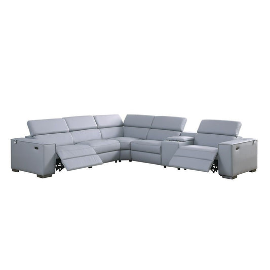 Picasso Light Blue 2-POWER Leather Match 6pc Sectional MI631