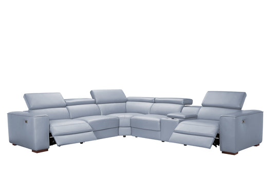 Picasso Light Blue 3-POWER Italian Leather Match 6pc Sectional MI631