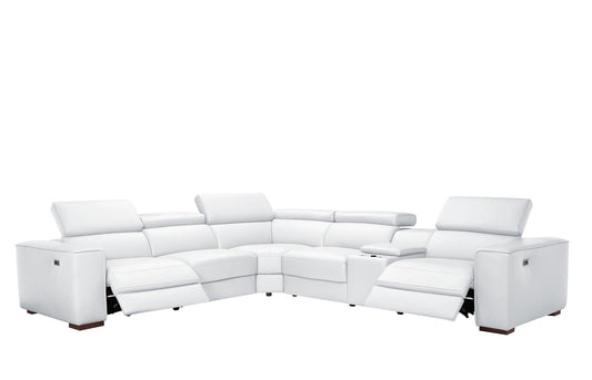 Picasso II White 2-POWER Italian Leather Match 6pc Sectional MI631