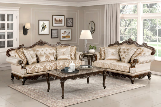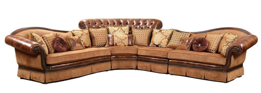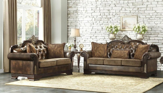 Victoria Brown Upholstered Tufted TOP GRAIN LEATHER Living Room Set 50068 981-03
