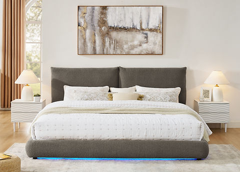 Beige Boucle Fabric 6 FT Queen Bed | HH405