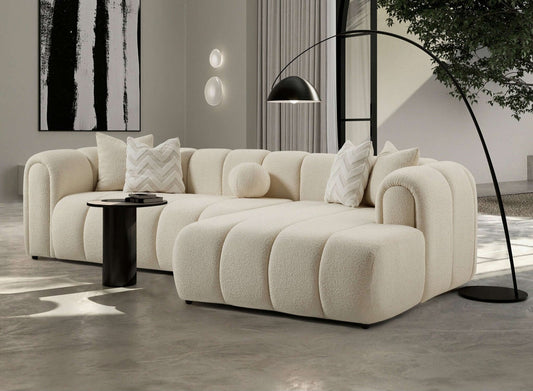 Beatrice 115" Modern Tufted Ivory Boucle Sectional