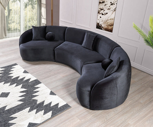 Bonita Charcoal Velvet 3pc Curved 138" Sectional
