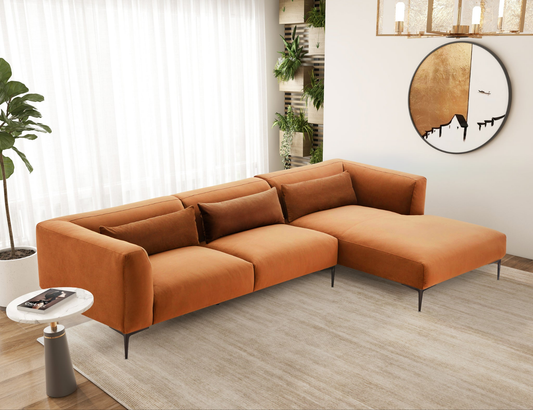 Laley Right-Facing L-Shaped Velvet Sectional in Burnt Orange